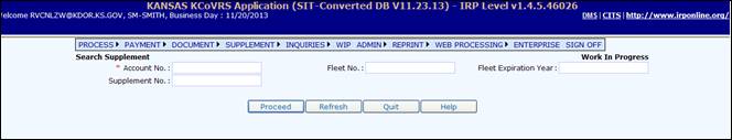 For example on WIP, the user would enter the Account No. and Click Proceed button to get to the supplement screen directly. If more than one supplement exists for the account, the information grid will display. Based on the information in the grid, the user can select the supplement to process by pressing the SELECT icon located on the left of the supplement line.
