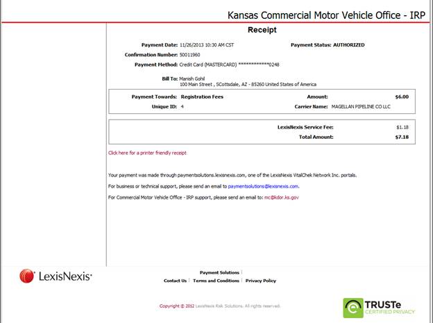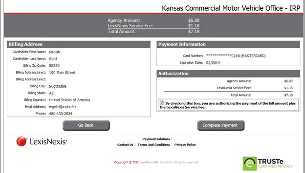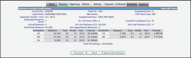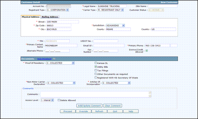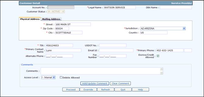 · Select PROCEED from the validation screen to save the Service Provider information. Service Provider will have a customer id. Once the service provider information is saved to the database, the user can assign the Service Providers to IRP/CMV fleets.