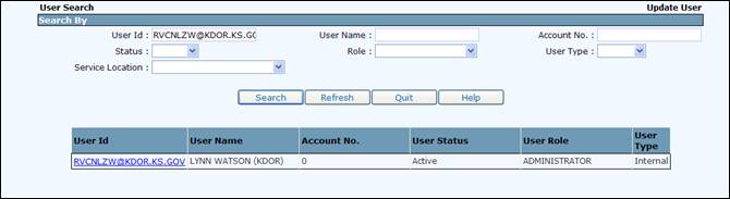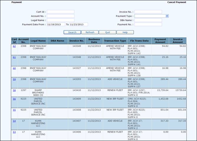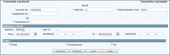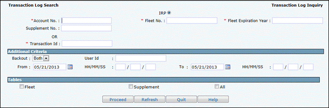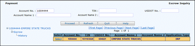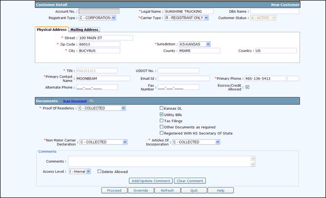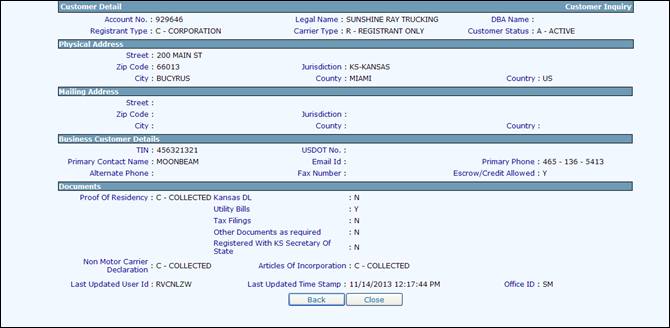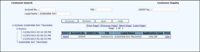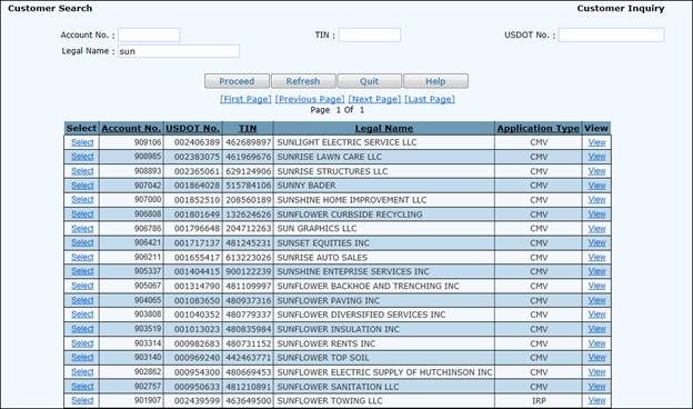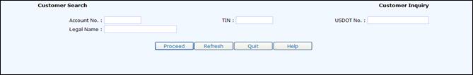 · On the Customer Inquiry screen, enter the Account No, the TIN, the USDOT No., or the Legal Name
