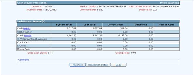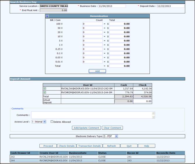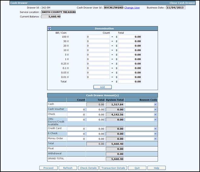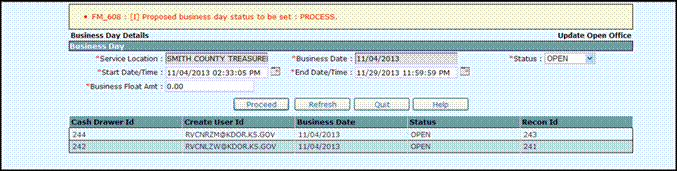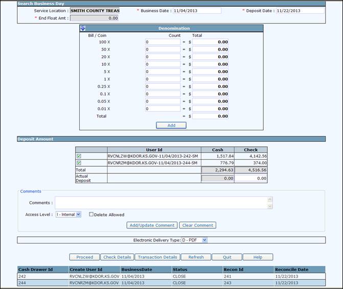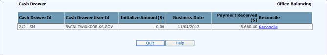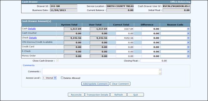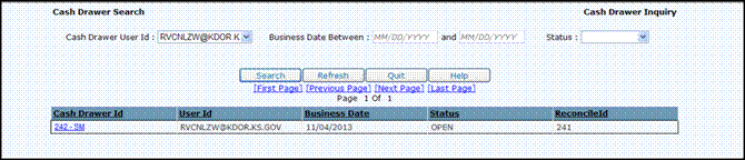 KCoVRS system has one cash drawer per day for the External users. This job will be scheduled in production. The batch job will place the previous day cash drawer on “HOLD” and initialize a cash drawer for the next day.