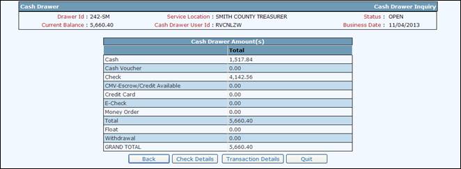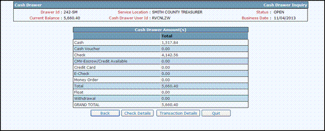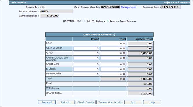 · Deposit Cash Drawer – Deposits External Cash Drawer