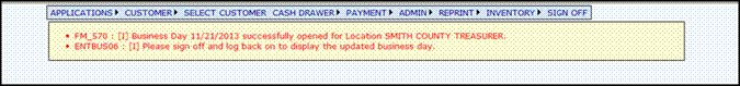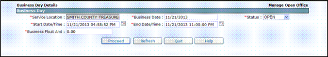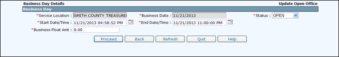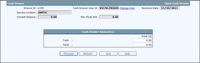 · Initialize Cash Drawer – initialize the cash drawer for the Business Day