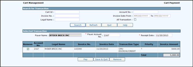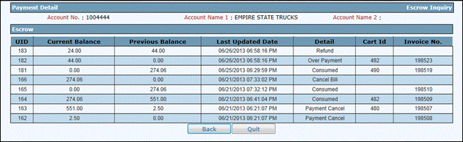QUIT – User will exit the transaction; however the transaction is not cancelled. The transaction can be continued using the WIP feature.