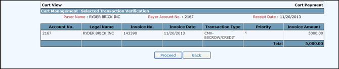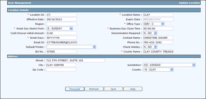 The verification screen will be displayed showing the user a consolidated view of the Customer information. If the user determines some of the information needs to be corrected, they can select BACK and the system will display the Customer screen again. The user can make the required changes and select PROCEED again.