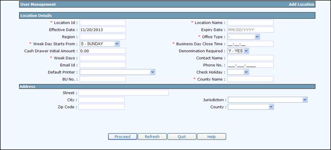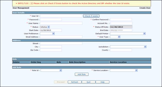Following information can be entered by the user. Any field preceded with a red asterisk on the screen is required.