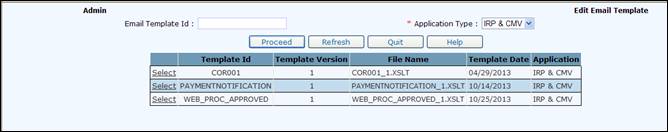 · Select the “Select” link for the template from the list and it will populate in the update screen