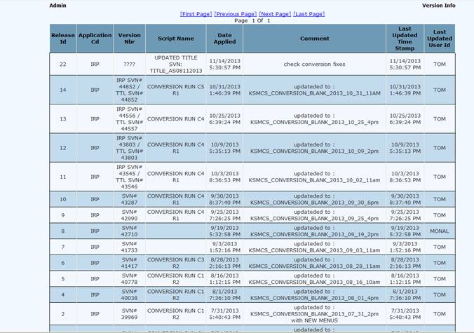 From the Enterprise Level of KCoVERS, select one of the applications and the appropriate Application Level screen and associated menu will display.