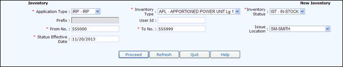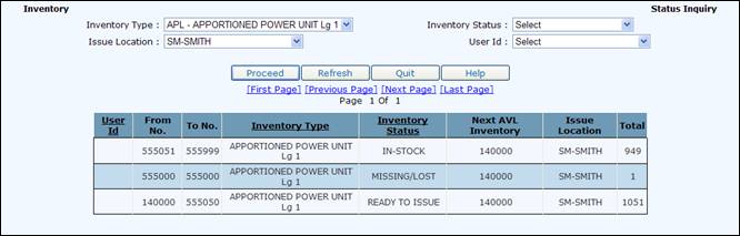 o READY TO ISSUE status will display the “Next Available Inventory” number for the INVENTORY TYPE