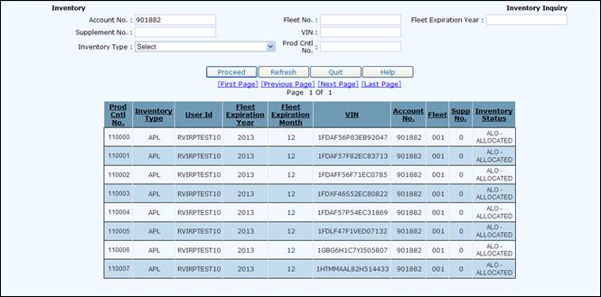 Inventory inquiry is used to determine what inventory is assigned to a particular vehicle.