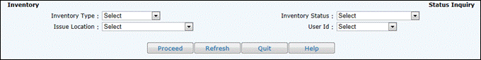 · From the Enterprise Level Menu, select STATUS INQUIRY from the INVENTORY tab